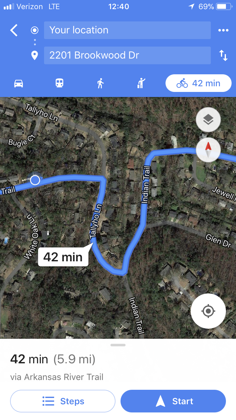 A big breakfast was in order. Plus it was still not very warm out with temps in the 40's with a cold breeze. I filled up and then plotted my way to yet another grand pedestrian structure across the Arkansas River. It was a winding downhill route switching back and forth among wooded suburban housing: